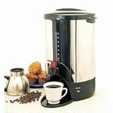 Elite by Maxi-Matic's 40-cup large capacity coffee urn is perfect for office use or at large gatherings. Built in stainless steel filter and chrome finish exterior for easy cleaning. Double thermal layer for extra insulating to ensure you enjoy hot and fresh coffee. Safety-lock on cover to prevent accidental spills. Automatic shut-off and keep-warm feature. Convenient water level indicator. Convenient coffee dispenser with continuous pouring feature. 1000-watt.
